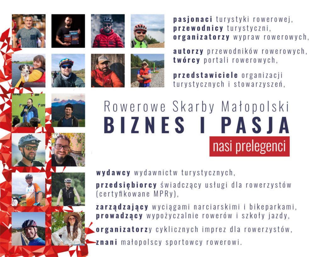Zapraszamy do oglądnięcia cyklu 12 webinarów poświęconych rowerowym skarbom Małopolski. Naszymi prelegentami są osoby związane z turystyką rowerową, małopolscy przedsiębiorcy, którzy wykorzystując rowerowy potencjał Małopolski, oparli o niego swój biznes. Pokazują, że na turystyce rowerowej można zarobić. Dodatkowo oglądając spotkanie z nimi można zobaczyć turystyczne walory tej części Polski. Naszymi gośćmi są:
